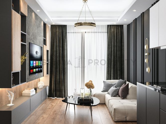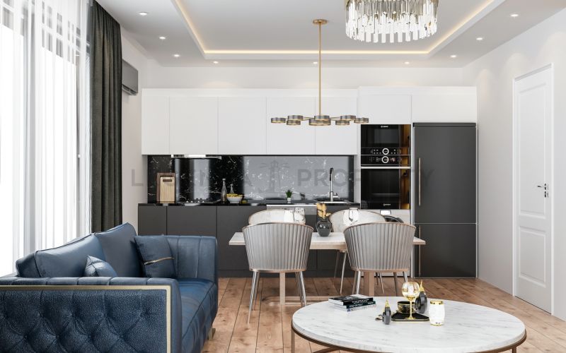 Уникальность нашего проекта в том, что он расположен в тихом, спокойном районе Оба в 2.7 км от прекрасных песчаных пляжей, в окружении природы.