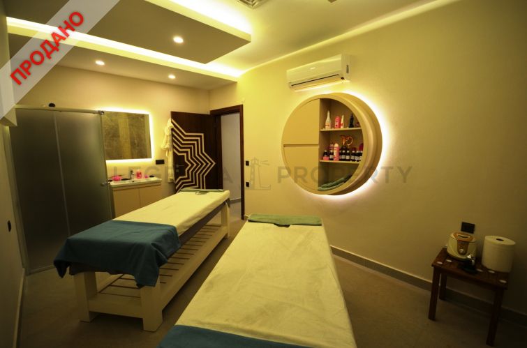 Внутри СПА салона находятся: крытый бассейн, османская баня (хамам),паровая комната, сауна, соляная комната, комнаты для массажа, комната отдыха, фитнес, пилатес, йога, бильярд, настольный теннис, squate (теннис), кинотеатр, детская комната, кабинки для переодевания и санузлы.
