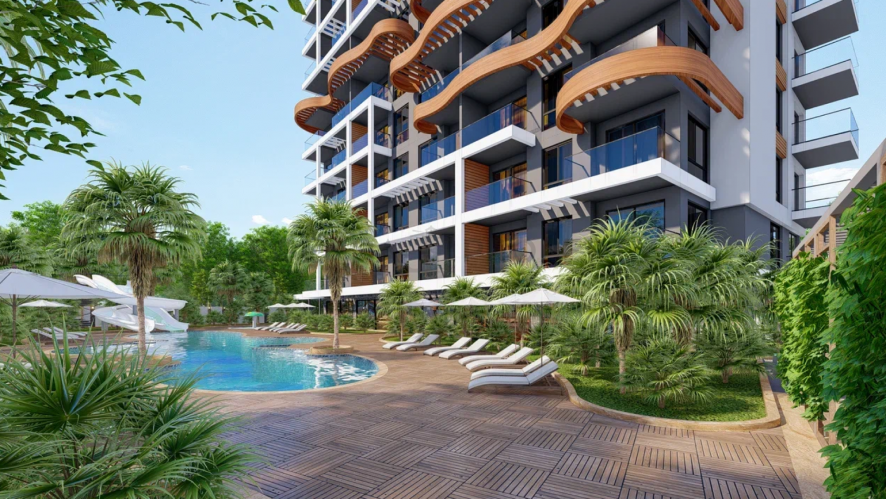 Проект расположился в одном из самых тихих и уютных районов Алании – Авсаллар. Этот район известен своими песчаными пляжами и природными красотами хвойных лесов. Тут есть вся необходимая городская инфраструктура: кафе и рестораны, сетевые супермаркеты и фермерский рынок по средам, государственная больница и частные клиники, аптеки, детские сады, школы, банки и прочее.