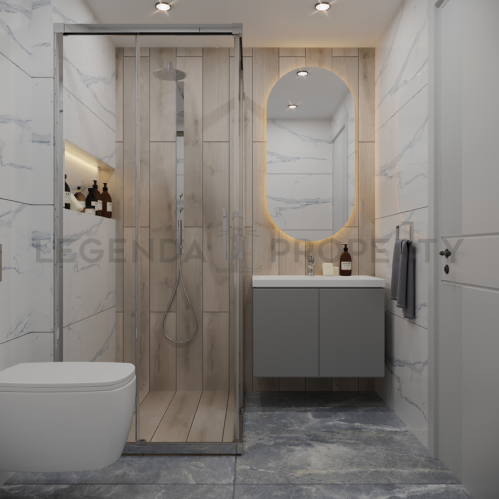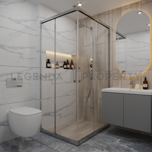 В квартирах: стальные двери, натяжные потолки, скрытое освещение, первоклассный керамогранит, моющаяся краска на стенах, керамика и дизайн кухонь и ванных комнат. Окно ПВХ с двойным остеклением и звукоизоляцией, дверь из ПВХ.