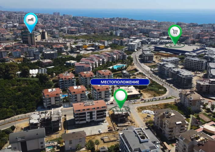 Новый проект будет расположен в престижном районе Оба, рядом со знаменитым торговым центром «Alanyum», гипермаркет «Metro» , магазином «Кочташ» и что немаловажно - очень близкое расположение к государственной больнице Алании. В шаговой доступности множество ресторанов, магазинов, маркетов, школ и детских садов. Несмотря на это, район очень тихий, рядом большие апельсиновые сады.