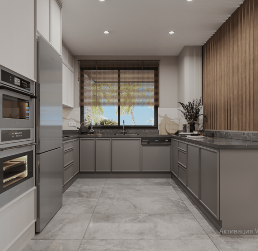 Комплектация апартаментов: входная стальная дверь, видео-домофон, встроенная мебель на кухне и в ванных комнатах, встроенный шкаф в коридоре, полный пакет бытовой техники фирмы Bosch (холодильник, посудомоечная машина, варочная поверхность, духовка, вытяжка, стиральная машина, микроволновка), кондиционер в каждой комнате, подогрев полов в ванной комнате, душевые кабины, сантехника, электрический водонагреватель.