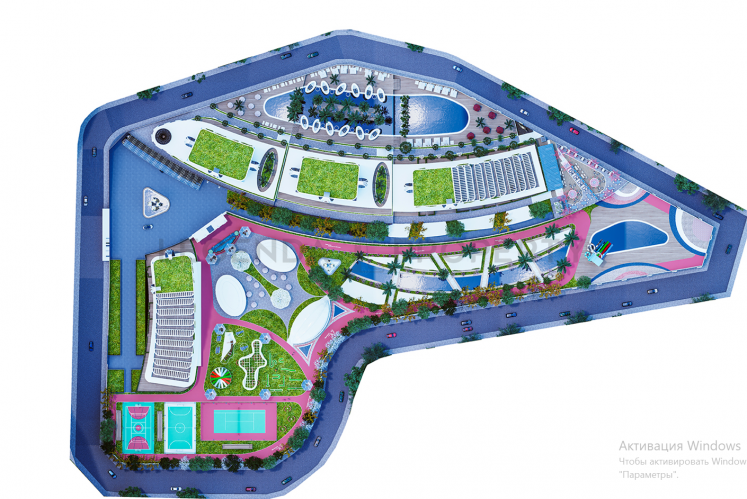 Собственников ждут теннисный и баскетбольный корты, футбольный стадион, мини-гольф, бассейн с аквапарком, элитный ресторан и бар у бассейна, крытый подземный гараж, охрана 7/24, видеонаблюдение, цитрусовые сады, зона барбекю, детская игровая площадка, турецкий хамам, открытый и закрытый плавательные бассейны, сауна, фитнес зал, вертолетная площадка, магазин, детская игровая комната, амфитеатр, кинотеатр, собственный шатл на море и в центр Каргыджак, управляющая компания и многое другое.